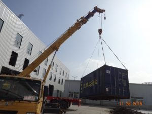 移动功能: 设备整体外形即标准海运集装箱,可以通过吊装、集装箱卡车实现移动功能,派遣到需要的工作地(野外、营地、应急驻地等),快速实现业务需要。