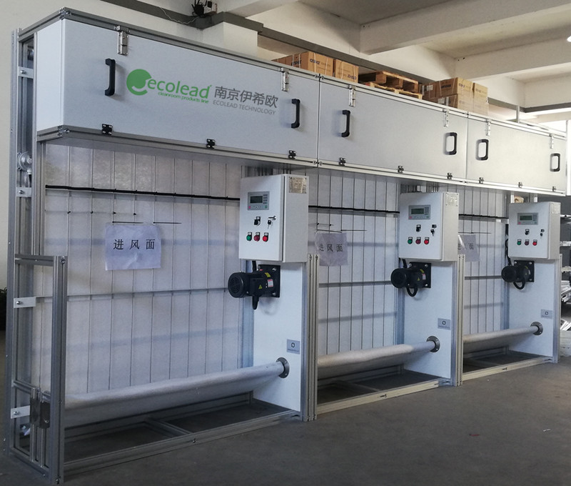 南京伊希欧公司自动卷绕式过滤器参数及应用范围简介 ◆ 规格尺寸 ◇ 标准高度系列(mm):1500、1800、2100、2400、 2700、3000、3300、3600、4000、4500、5000 ◇ 标准宽度系列(mm):900、1000、1200、1500、 1800、2000、2100 ◇ 风量范围(m3/h):4000-250000 ◇ 深度尺寸(mm):500-650 ◇ 可根据用户要求,定制各种规格尺寸。 ◇ 如客户安装现场空间狭小,CHF自动卷绕式过滤器 可以散件包装发运,搬到现场即可灵活拼装成型。 ◇ 详细技术参数资料,请来电垂询。 ◆ 技术参数 ◇ 过滤效率等级:G3/G4(EN779) ◇ 风速:建议<2.5 m/s ◇ 终阻力:建议值200-300 Pa ◇ 功率:100 W ◇ 电源:220/380V-50Hz ◇ 环境空气温度:-10°C至+40°C ◇ 环境相对湿度:90%RH ◆ 自动控制 ◇ 在滤料的进风面安装有压差控制器,根据用户使用环境要求,预先设定滤料使用的终阻力。 ◇ 当压差大于设定的终阻力时,PLC发给马达运转信号,系统开始更换新料。 ◇ 控制柜里装有预先设定每更新一次滤料的长度,并把整卷滤料能更换的次数输入控制器电脑芯片中。 ◇ 电机在带动卷轴换料的开始,装在设备顶部的激光栅光电控制系统开始工作,记录滤料向下更换的长度, 并且把所记录的数据传输到控制柜中的PLC。 ◇ 当所记录的滤料移动数据和电脑PLC里的预设数据相同时,PLC立即发指令,停止马达运转。 ◆ 应用范围 ◇ […]