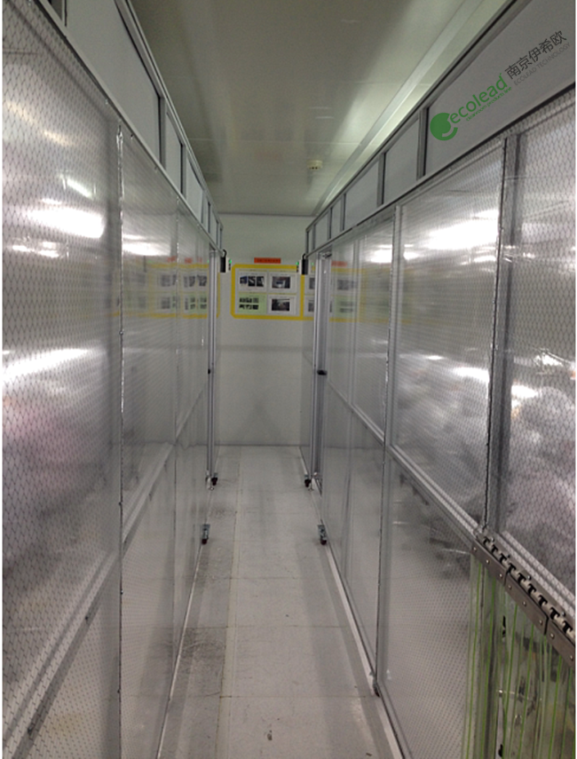 产品简介 洁净棚是最方便建立的一座简易洁净房,以工业铝材(或不锈钢、冷板方通)做框架,采用自带风机过滤机组(FFU)送风,四周用防静电软帘(或钢化玻璃或PC板)围挡,内部净化级别可达百级到十万级。 适用于车间内对洁净度要求高的局部区域,如流水线作业区域,高精度产品组装区。 洁净室(Clean Room),亦称无尘车间、无尘室或清净室。 我公司专业为南京周边地区服务,格适中欢迎来电咨询。 工作原理 风机将空气从FFU顶部吸入,经初效、高效过滤,过滤后的洁净空气在出风面匀速送至洁净棚内,形成均流层,气流呈单向流, 从而保证了工作区内所要求的洁净度的安全。 产品特质 *拼装式结构设计:安装方便,对入口、室内空间要求低 *成本低、施工快、可重复利用 *移动方便,可装万向轮 *内部有效操作空间大 产品材料 * 框架:阳极氧化铝型材,方管喷塑,不锈钢方管 * 防静电软帘:透明度高、网格清晰、防尘防静;或者采用PC板,PC板具有透明度高、质轻、抗冲击、隔音、隔热、难燃、抗老化等特点,是一种高科技、综合性能极其卓越、节能环保型塑料板材,是目前国际上普遍采用的塑料建筑材料,有其他建筑装饰材料(如玻璃、有机玻璃等)无法比拟的优点。 * 顶部盖板:钢板烤漆或铝塑板 * 灯具:洁净室专用净化灯 * FFU:后倾式离心风机,寿命长、噪音低、免维护