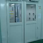 南京伊希欧 风淋室简介 产品简介 风淋室是进行人身上净化和防止污染空气进入洁净区的装置,它是利用高速的洁净气流清除人员身上服装或物料表面的尘粒。同时还起到气闸室的作用,阻止室外空气对净化室或低级别对高级别净化室的污染。 L型转角式适用于无尘车间与缓冲区域不在同一直线位置,需要L型来衔接,可以节省空间,使行走路线更顺畅,从而提高通行效率。 产品功能: 风淋室内的空气经初效过滤器由风机压入静压箱,经高效过滤器净化,从喷咀高速喷出,从而吹除人身上和携带物品表面附着的尘埃,防止未经净化的空气进入净化区域。 产品特性: *产品结构坚固,便于安装 *PLC 控制系统稳定高效,如有停电,风淋室门会自动解锁*初效高效两级过滤,高效效率高达99.99%效率@0.3um *高风速360度可调式不锈钢喷嘴 *易于更换初效和高效的装置 *配置洁净室专用净化灯*可调式的吹淋时间(10-99秒) *配德国品牌闭门器 *可靠的互锁功能*配有急停按钮