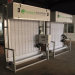 六安河西污水厂购买的自动卷绕式过滤器完成交货 自动卷绕式过滤器风量:35000 m³/h 设备数量:2套 合同签订日期:2021年4月 设备交付日期:2021年4月27日 产品简介 设备主体材料:优质铝型材;控制系统:自动和手动控制。电机:380V 100W 滤料:卷绕式过滤器专用G3滤棉。 控制原理 手动即按设备上的按钮开关(多台拼接时)或电控箱上的控制屏“ENT”键,电机立即启动,底部的卷轴卷动将滤料向下卷动,再按一次才会停止。 自动即按电控箱上的控制屏“SET”键,设备进入自动模式。 当初效滤棉越来越脏,其通透性越来越差,滤棉进出风面气体压力差越来越大,达到设定的数值时,空气开关动作,PLC接收到信号,电机启动,按照设定的时间(每次运转的时间不一样,越来越短)运转,时间一到即停止。 //ecolead.cn/blog/wp-content/uploads/2021/05/595F692D@9B75300C.6BCA9460.png.png” style=”width: 624px; height: 624px;” id=”img_insert_16203638740050785277031077587″ modifysize=”83%” diffpixels=”18px” scalingmode=”zoom”>