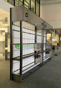 重庆某环保公司采购的不锈钢材质风管型自动卷绕式过滤器 设备名称:自动卷绕式过滤器 设备数量:2套 发货日期:2022年1月14日 产品简介: 自动卷绕式过滤器风量:80000m3/h 1套、60000m3/h 1套,设备尺寸:3524W*3450H*2100D、3124W*3250H*2100D,国内知名品牌电动机,自动卷绕式过滤器专用G3滤棉,配套编码器、随机配套安装配件、配套底部镀锌管支架。 //ecolead.cn/blog/wp-content/uploads/2022/01/0307385E@F4E34210.AEB9E861.jpg.jpg” style=”” id=”img_insert_1642641833257017852411102522847″> 产品应用: *对洁净室新风进行空气大颗粒物进行有效的过滤器,提供更加合格的空气进入洁净室内部; *有效防止空调的新风口周围出现污渍的表象,廷长后段中效高效过滤器的使用寿命; *有效防止污水处理厂鼓风机积灰严重,安装在鼓风机前端对鼓风机给予有效保护; *对于化工厂、纺织厂、喷涂车间等空气过滤器系统进行初效过滤,去除大部分的颗粒物,有效提高排出废气和循环气体的质量。 控制功能明细: 标准功能 电源指示 电机保护 滤料报警指示 手动/自动控制 选配功能 压差显示 滤料报警信号输出(无源信号干接点) 电机运行/故障信号输出(无源信号干接点)