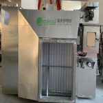 当自动卷绕式过滤器用于过滤有害颗粒物或刺激性气体时,在更换率料时,操作人员要进入有害粉尘或刺激性气体的封闭空间此操作人员有伤害。通过过滤箱型 卧式自动卷绕式过滤器的专利设计,操作人员不需入内操作更换滤料,非常的安全便捷