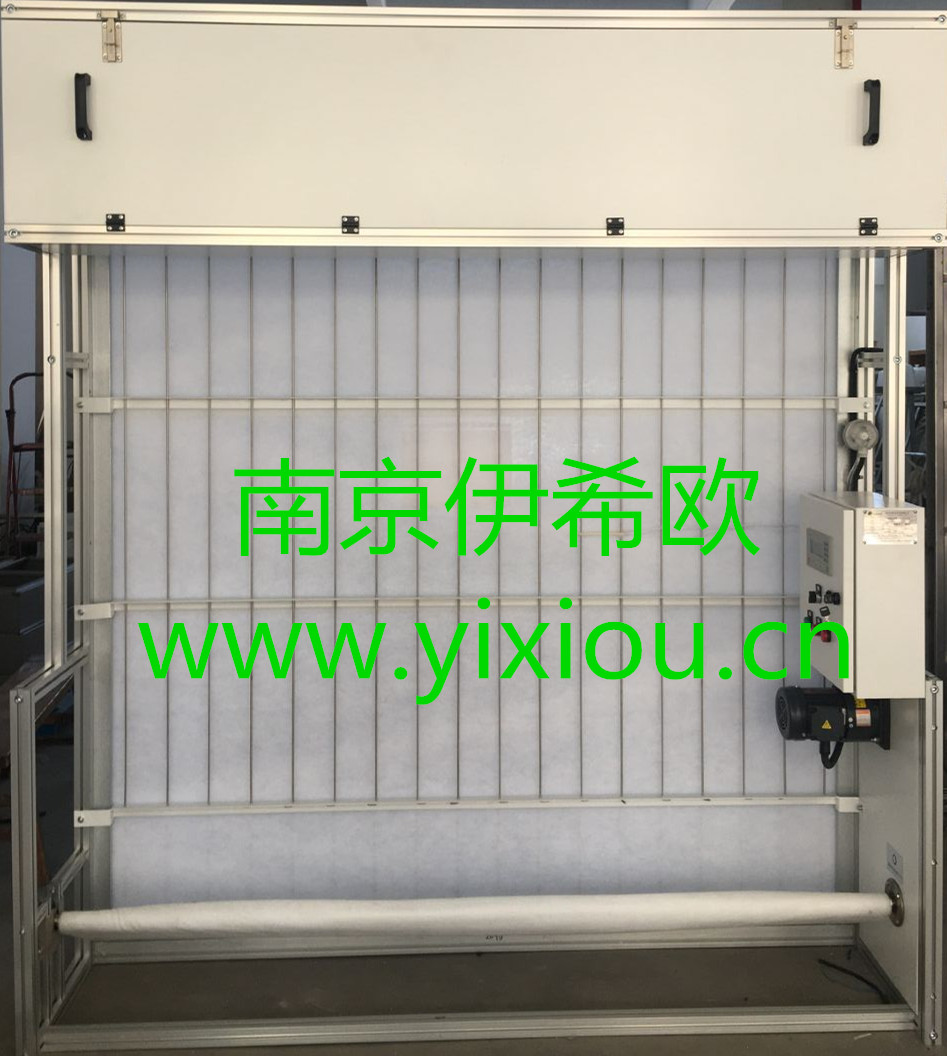 南京伊希欧科技公司手摇式卷帘过滤器      手动摇卷绕式过滤器实际上是一种配初效滤料的空气除尘设备,主要特点为人为摇卷手轮实现了滤料更换的自动化。 材质:冷轧板喷涂、铝型材或SUS 304/316等; 控制:手动、时间/压差控制、光电控制,PLC 控制等; 滤料:专用覆网过滤材料,G3、G4效率等; 安装:成品出货现场只需通电便可运转,若因现场安装空间限制,           可散件包装发运,货到现场即可灵活拼装成型。 工作原理 1、主要是由滤料、滤料缠绕系统及手动摇卷手轮部分组成; 2、新过滤材料装在上料箱,当进风带有高浓度含尘空气通过卷绕式过滤器后,过滤器前后压差随滤尘增加而逐步上升; 3、当过滤器阻力上升到设定的终阻力值时,人为的摇卷更新滤料。