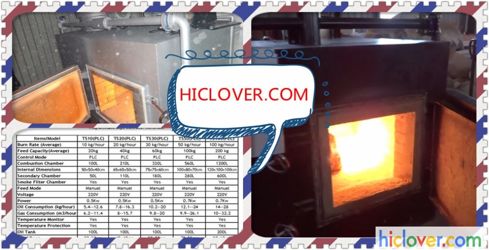 *** Primary combustion chamber & secondary combustion chamber*** Smoke filter chamber(dry scrubber)*** stainless steel chimney*** PLC auto. control*** Italy